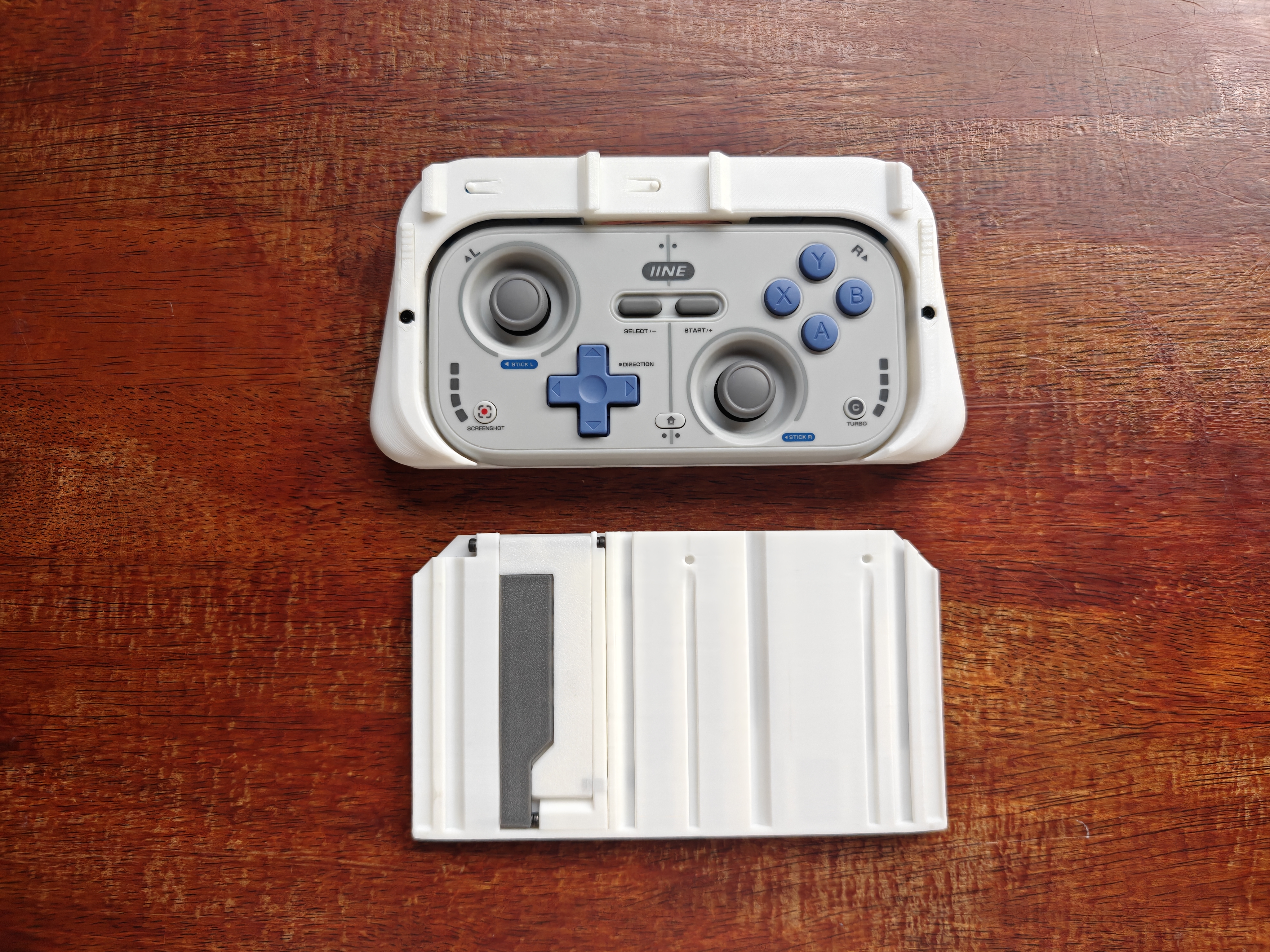 I designed a compact, foldable gaming controller that attaches directly to a mobile phone. The controller can be disassembled and used as a phone stand, making it both portable and multifunctional. The controller was designed to prioritize small size, with minimal compromise on comfort, while integrating multiple practical features.